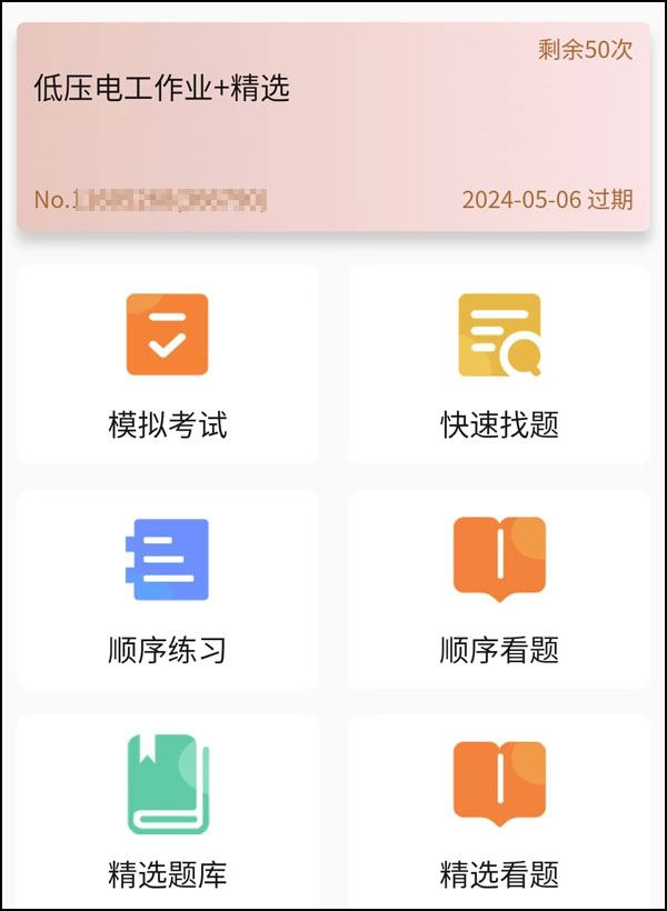 7、每个卡有50次模拟考试,顺序练习、顺序看题不限次数。