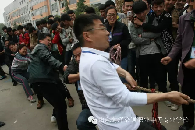 我校2015年春季师生趣味运动会经过一个多月紧张、激烈、兴奋的角逐,六个项目95场比赛今天全部结束。在一个多月的比赛中,胡主任、刘主任带领教管处全体老师精心筹划组织,两个专业各位老师积极参与,确保了比赛的顺利进行。全体参赛选手发扬了“努力、拼搏”的体育精神,本着“友谊第一、比赛第二”的首先风尚,赛出了风格,赛出了水平。没有参赛项目的老师、同学也跟着一起呐喊、助威,这充分体现了我们交通中专这个团队精诚团结,踏实认真的工作态度和勇于拼搏的精神风貌。 拔河(胡主任喊“开始”口令)