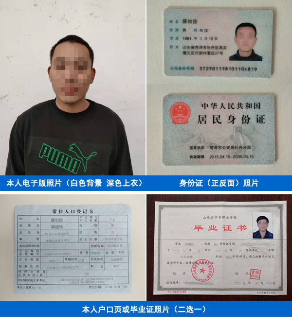 1、本人电子版照片(白色背景 深色上衣),手机拍本人即可