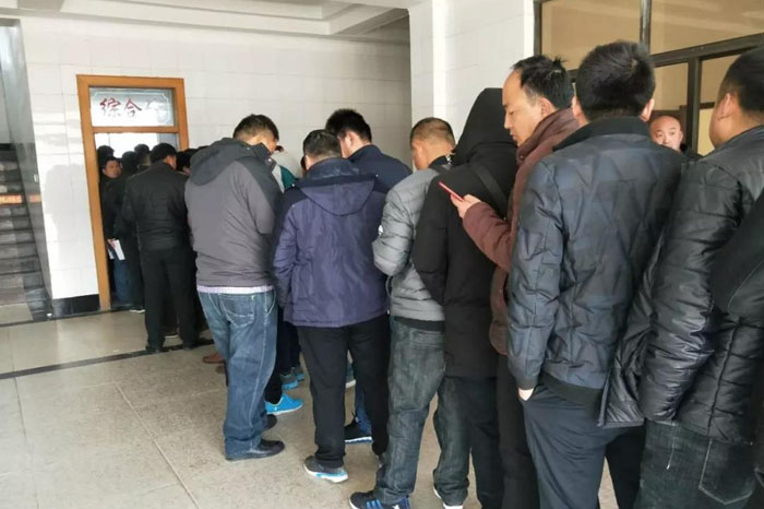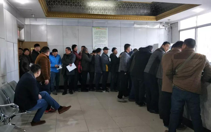 大厅外队伍排出了办公楼