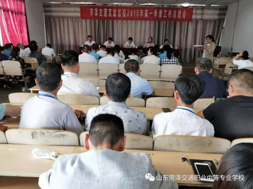 5月10日下午4点半,菏泽市交通高级技工学校第一季度工作总结大会在学校五楼会议室召开。大会由副校长顾军主持,共分为两大议程,全体教职工参与。 会前点名 顾校长主持会议 本次会议既是学习贯彻集团公司一季度工作会议精神,又是对学校第一季度各项工作的总结,为更好地开展第二每季度工作树立了明确的目标。会上,张恩艳书记传达了《张维国总经理在交通集团一季度工作会议上的讲话》,张红雪校长作了重要指示,并对下一步工作提出要求。 张书记传达集团公司张总讲话精神 张校长作重要讲话 张校长提出以下五点要求: 教职工们认真领悟大会精神 虽然第二季度工作任重道远,但我们将以本次会议为动力,在以张校长为首的校委会的领导下,科学谋划,真抓实干,发扬成绩,乘势而上,努力做好各项工作,为学校发展提供有力的保障。
