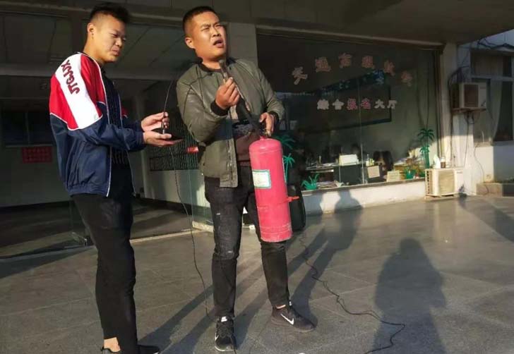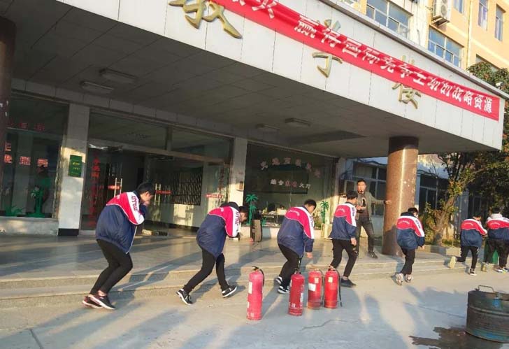 学生模拟使用灭火器 学生模拟使用灭火器 学生模拟使用灭火器 学生疏散演练