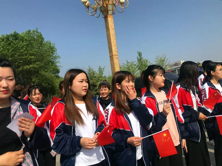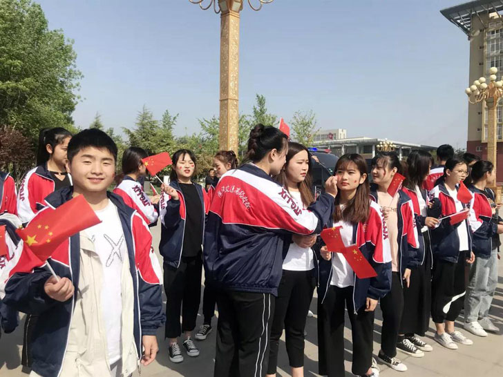 近日,菏泽市交通高级技工学校学生参加了牡丹区公安分局的快闪唱响《我和我的祖国》活动,活动组织有序,气氛热烈。当天上午,在副校长顾军的带领下,由张云海主任、李秀芬老师、洪倩老师带队,参加演出的学生们身穿校服,散发着青春的活力,在现场形成了一道靓丽的风景线。