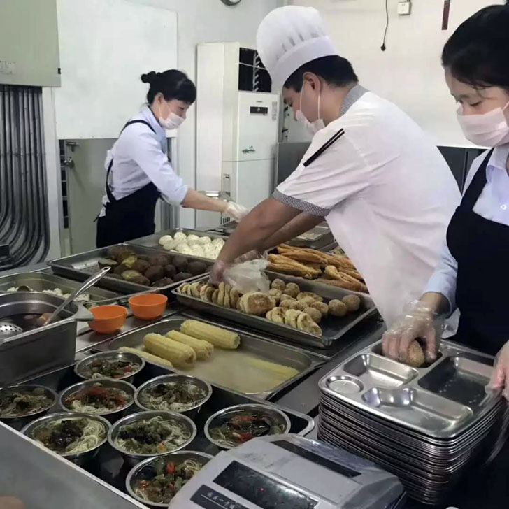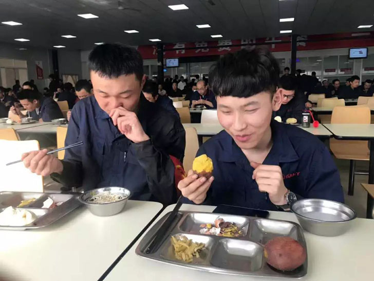 另一方面,我安排刘主任做好学生的思想工作,工厂不是学校,有时候为了生产进度产生的加班也是在所难免,希望大家可以克服困难,尽快适应! 我们决定跟着学生一起用餐,看看学生生活情况怎么样。餐厅有两个,一个是白领餐厅,一个是普通餐厅。早上七点,工人陆陆续续到餐厅。餐厅的品种还是很多的,大米粥是免费的,我要了一个鸡蛋,一个玉米,一点小咸菜,也就是一块五,学生的一顿早餐不到五元。中午没能吃上普通餐厅。刘老师介绍,学生中午米饭免费,菜的样式也不少,鸡腿,红烧肉什么的都有,一顿饭也就是八元左右。厂每天补贴十五元,随工资发放。 职工宿舍是四人间,空调、电视、独立卫生间、二十四小时热水,水电费自理。有宿管阿姨管理,对宿舍卫生每天检查,不合格会有通报和惩罚!