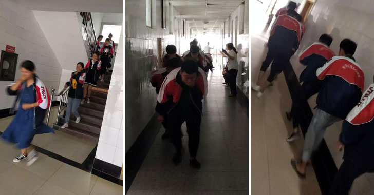 学生迅速离开“危险区”到教学楼前集合