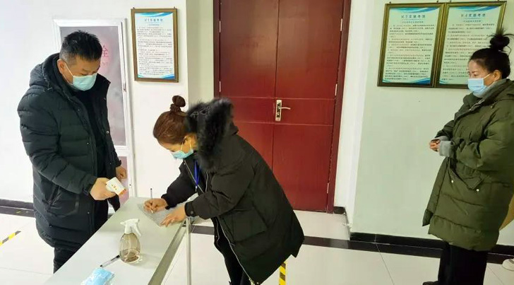 严格落实疫情防控政策,排队测温、消毒、登记。