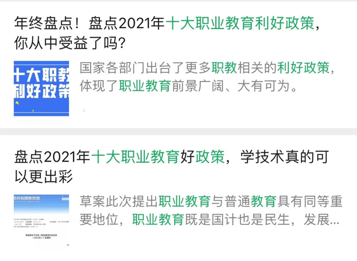 家长读职业教育政策:读中职学校可以考大学也可以高质量就业! 做正确的选择:如果你在读初中的时候语数外三科基础不是很好,没有考上普通高中,选择职业教育升学路线和就业路线!选择中等职业学校你有多种选择,中职学生毕业后实行双向选择、自主择业,也可以升入高等学校继续深造读大学。中专升大专,专升本已获得国家职业教育多项政策支持!