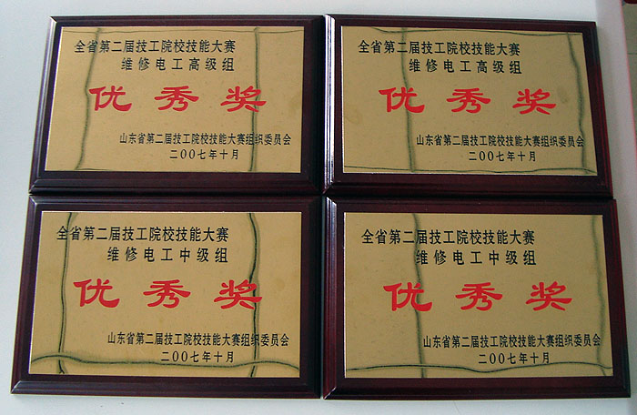 2007年全省第二届技工院校技能大赛电工比赛中高级组、中级组选手均取得优异成绩,各有两名学生获得优秀奖。