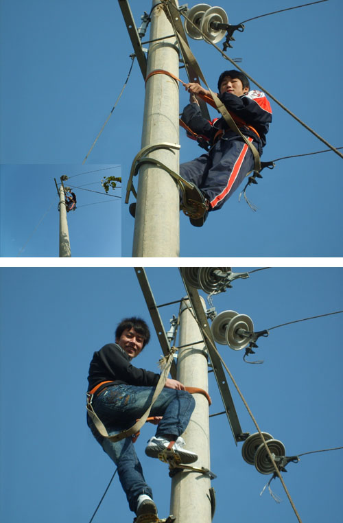 机电系学生在比赛爬电线杆