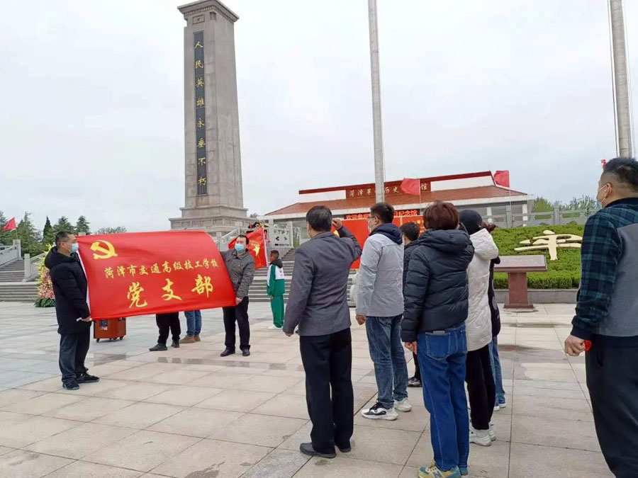 缅怀英烈祭忠魂,抚今追昔思奋进。清明节将至,为在实境中汲取精神力量,坚定理想信念,传承革命先烈艰苦奋斗和不怕牺牲的革命精神。4月4日,菏泽市交通高级技工学校党支部来到菏泽市烈士陵园开展“清明节缅怀先烈活动”。