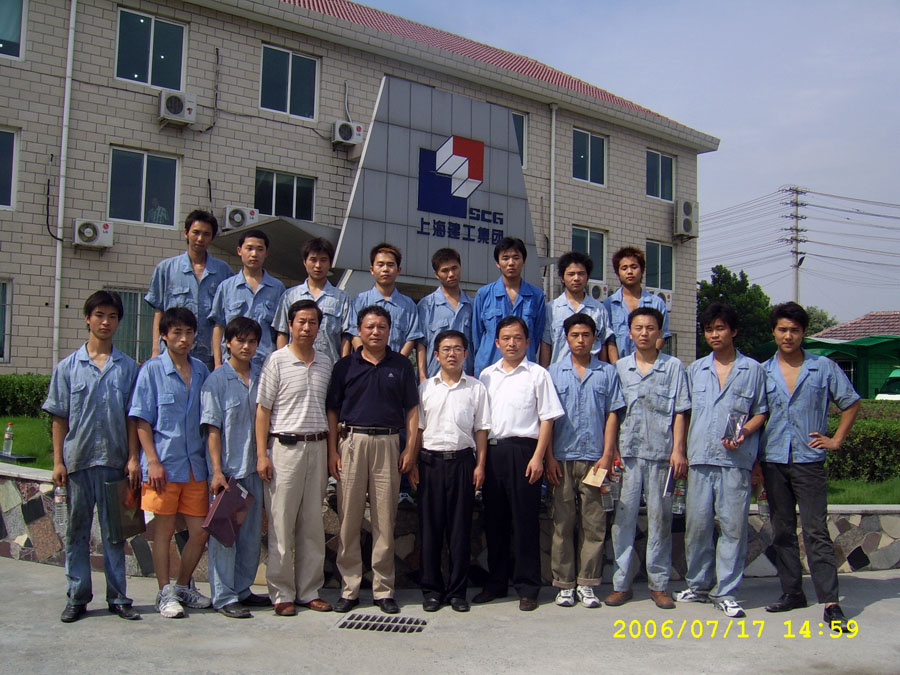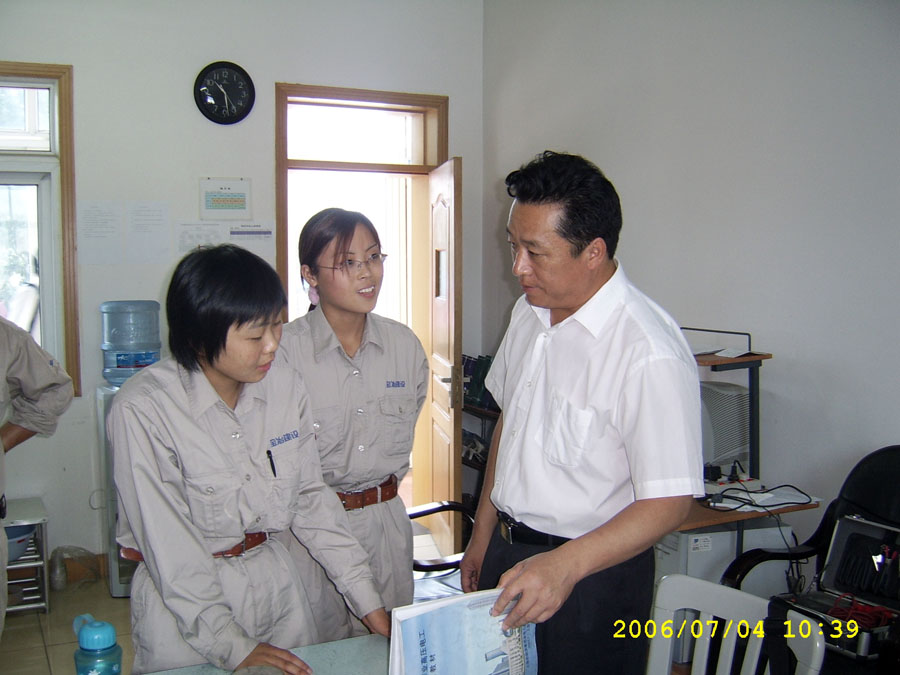 刘校长在上海宝冶公司看望电工专业学生并询问工作情况: