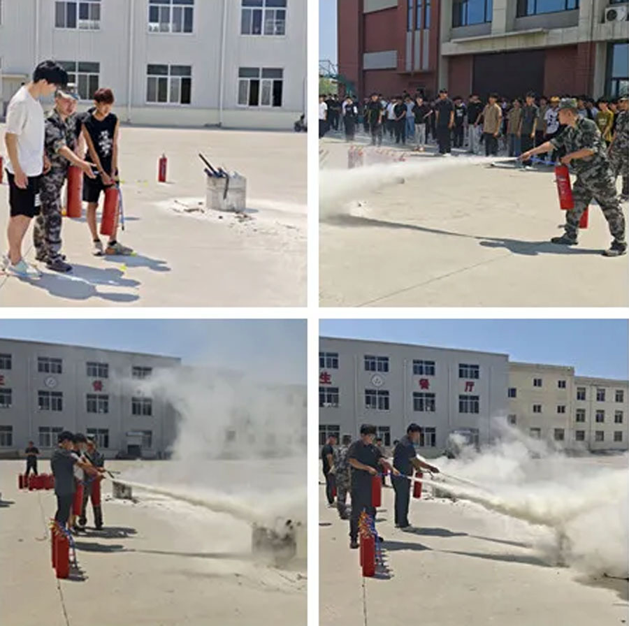 教官们为师生们进行消防器材使用演示,详细讲解了灭火器“提、拔、握、压”的操作要领,并指导师生代表进行实操演练。同学们积极参与,在专业人员的指导下,成功扑灭模拟火源,切实掌握了灭火器的使用方法。